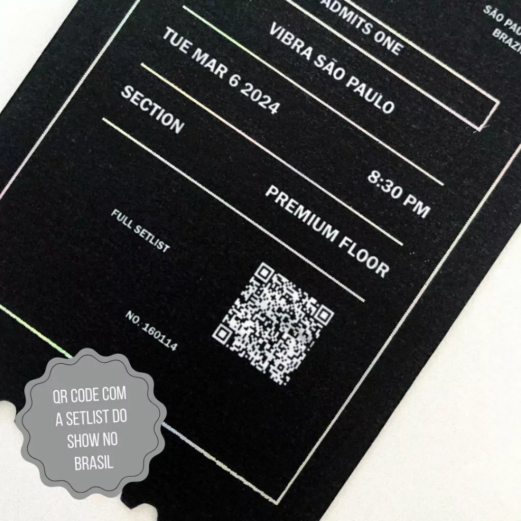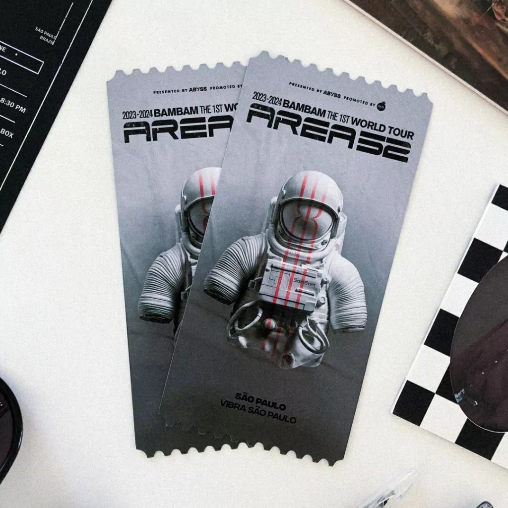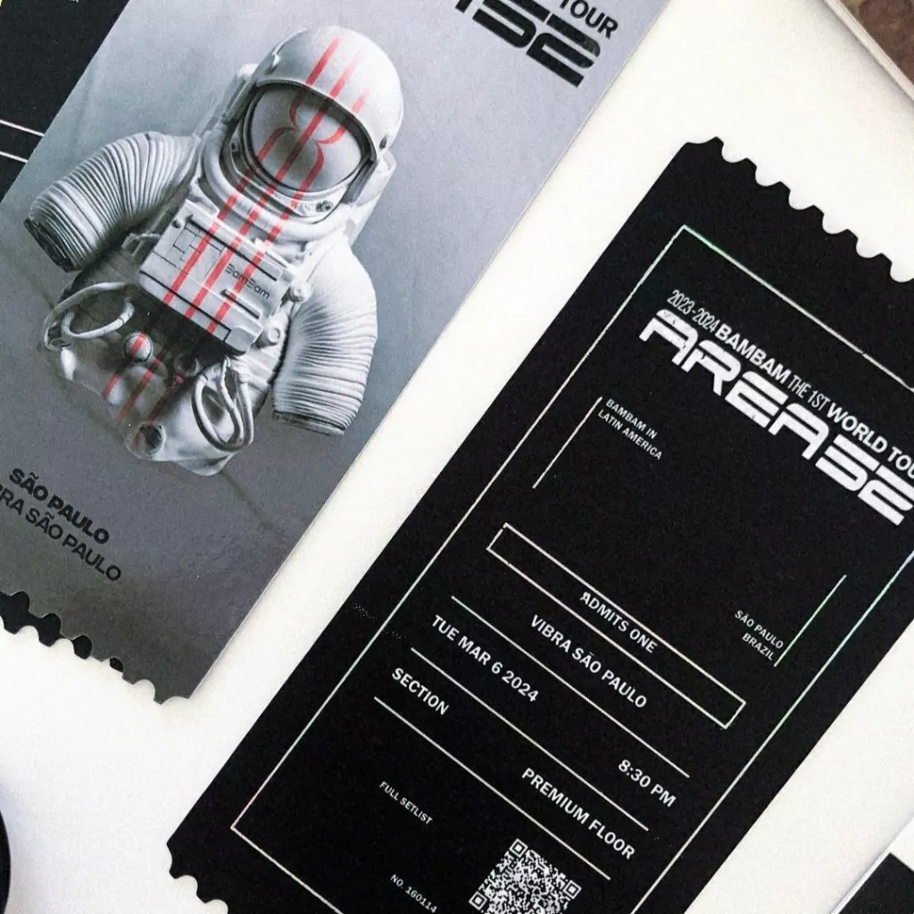 O Bilhete é um ingresso não-oficial de um show (podendo ser fictício ou real) dos grupos de KPOP, contando com o nome e lista de músicas da turnê, setor, fileira e assento fictícios do portador do ingresso, com alguns detalhes metálicos.