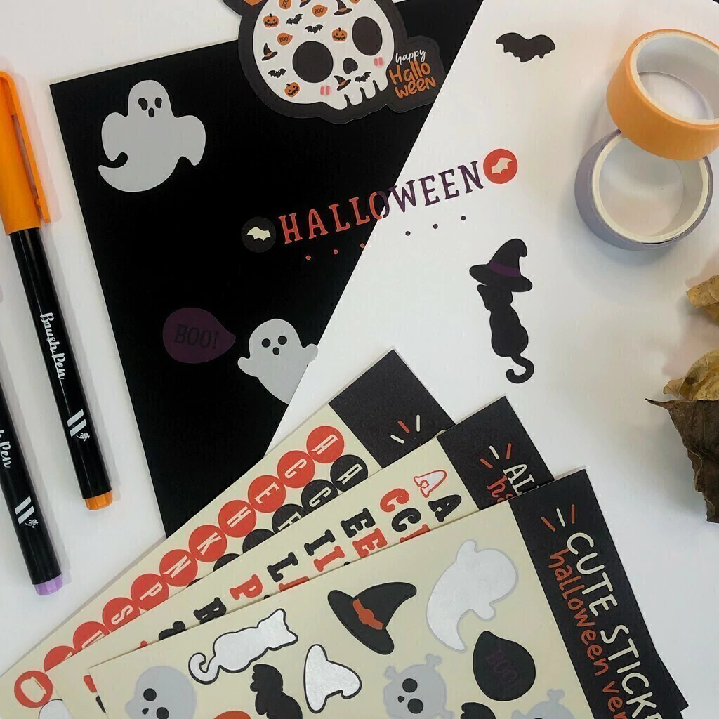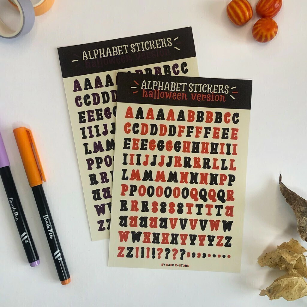 Com as Alphabet Stickers de Halloween você pode decorar seus itens pessoas com muita fofura e criatividade! A cartela conta com o alfabeto completo, com letras destacáveis e temático para você colar onde quiser e montar diversas colagens.