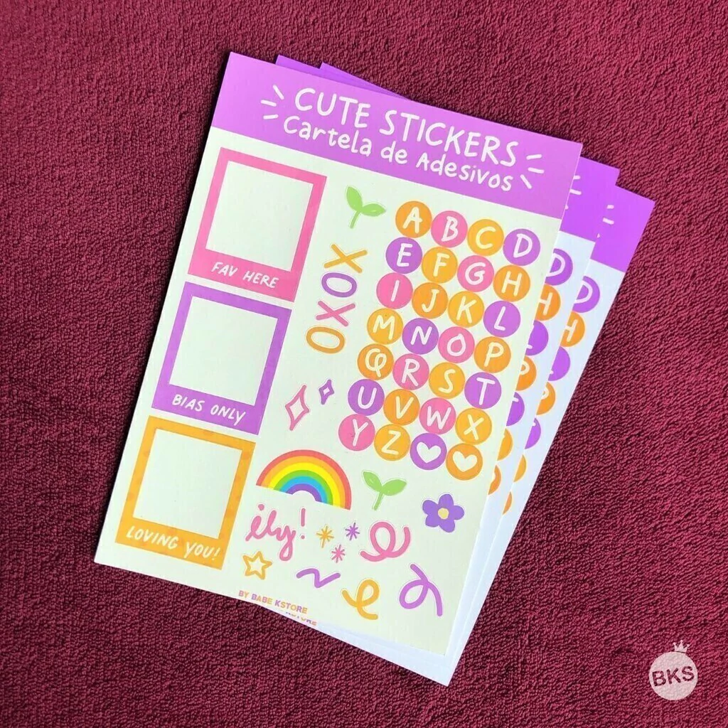 Com os cute stickers você pode decorar seus itens pessoas com muita fofura e criatividade! A cartela conta com mais de 30 adesivinhos para você colar onde quiser e montar diversas colagens.